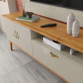 Rack Estante Sirius 3 Portas Para Tv Até 60 Polegadas Off White Com Cinamomo Com design moderno e funcional, o Rack Sirius é ideal para quem busca sofisticação e praticidade na sala de ível com TVs de até 60 polegadas, o modelo conta com nichos abertos para aparelhos eletrônicos e objetos decorativos, além de portas que oferecem ótimo espaço interno para organizaçã frentes com usinagem discreta dispensam puxadores aparentes, criando um visual clean e contemporâneo que valoriza qualquer estrutura com pés em madeira garante firmeza, resistência e um toque natural, tornando o Rack Sirius uma peça versátil e ões:Altura: 67,5cmLargura: 160cmProfundidade: 38cmObservações:- Design moderno com frentes usinadas e visual clean- Ideal para TVs de até 60 polegadas- Nichos abertos e portas com ótimo espaço interno- Pés em madeira resistentes e duráveis- Perfeito para salas modernas e ambientes integrados