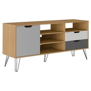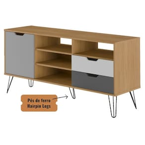 Eleve o padrão do seu ambiente com o Rack Estocolmo. Baseado no reconhecido design escandinavo, este móvel apresenta uma combinação equilibrada de madeira de cor clara com detalhes em cinza e branco. A precisão no design das portas e gavetas em MDF destaca sua qualidade e atenção aos detalhes. Os pés de metal, denominados Hairpin Legs, adicionam uma dimensão moderna ao móvel.