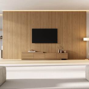 O Rack com painel Aruá traz a essência do estilo japandi, inspirado na simplicidade oriental e no equilíbrio entre forma e função. O rack possui um design baixo com acabamento em Jatobá, ferragens premium, unindo sofisticação e praticidade. Já os painéis são produzidos em chapas de 15mm e oferecem modularidade e personalização do espaço. Versáteis, podem ser utilizados como revestimentos de parede ou painéis de TV, transformando o ambiente com harmonia e elegância. Produto Montado: Sim Acabamento: Finish Foil Acabamento da Porta: Finish Foil Acabamento dos Pés: Finish Foil Altura do Conjunto: 230 cm Altura do Painel: 230 cm Altura do Rack: 35,7 cm Altura dos Pés: 5,5 cm Altura Máxima dos Pés: 5.5000 Ambiente Principal: Sala de Estar codigo_ean: 7900288293749 Complexidade da Montagem: Média: pode ser montado por mais de uma pessoa e/ou necessite de maior conhecimento para montagem Cor: Jatobá Cor do Produto: Jatobá Escala de Brilho: Semi-Fosco Escala de Brilho da Porta: Semi-Fosco Espessura do Painel: 3 cm Espessura do Tampo: 40 mm Fixação na Parede: Sim Itens Inclusos: Painel com Rack, Manual de Montagem e Kit Ferragens Largura do Conjunto: 400 cm Largura do Rack: 210 cm Linha ou Coleção: Aruá Manual de Montagem e Instalação: https://product-hub-prd.madeiramadeira.com.br/378660162/documents/4913366e-1db2-45b7-a60c-c50d6770b4423342799342817658345190391.pdf Marca: CabeCasa MadeiraMadeira Material da Porta: MDP Material dos Pés: MDP Material Principal: MDP Montagem Flex: Sim, aparador monta o lado esquerdo e direito Necessita Montagem: Sim Origem do Produto: Nacional Peso do Painel: 108,4 kg Peso do Rack: 44,45 kg Possui Espelho: Não Possui iluminação: Não Possui Passa Cabos: Não Possui Pés: 01 Possui Prateleiras: Não Possui Tomada: Não Possui Vidro: Não Profundidade do Conjunto: 40,5 cm Profundidade do Rack: 37,5 cm Recomendações de Uso, Manutenção e Limpeza: A limpeza deve ser feita com pano macio, levemente umedecido com água e sabão neutro. Em seguida, passe um pano seco para evitar o acúmulo de umidade. Nunca utilize produtos abrasivos, esponjas de aço, alvejantes, álcool em excesso ou solventes, pois esses produtos podem agredir o acabamento e comprometer sua aparência. Sapatas Niveladoras: Não Sistema de Montagem: Parafusos e cavilhas Suporte de TV Universal Incluso: Não Tipo de Dobradiça/Corrediça da Porta: Metálica Tipo de Puxador da Porta: Embutido