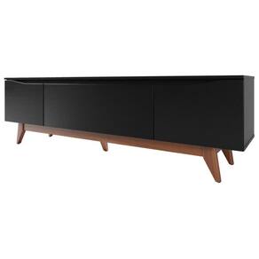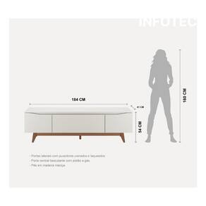 O Rack Flynt 184 cm combina modernidade e funcionalidade em um design clean que valoriza qualquer ambiente. Ideal para salas de estar, ele acomoda TVs de até 75 polegadas, além de oferecer três compartimentos espaçosos para aparelhos eletrônicos e objetos decorativos. Fabricado em MDF e MDP com acabamento em verniz UV, possui pés altos em madeira maciça Tauari e puxadores embutidos para um visual sofisticado e prático. Sua porta central basculante com pistão a gás facilita o uso diário, tornando-o uma peça essencial para quem busca organização com estilo.