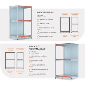 *O Rack Continuação possui 1 lateral, utilizado para dar continuidade à fileira e não pode ser montado individualmente.