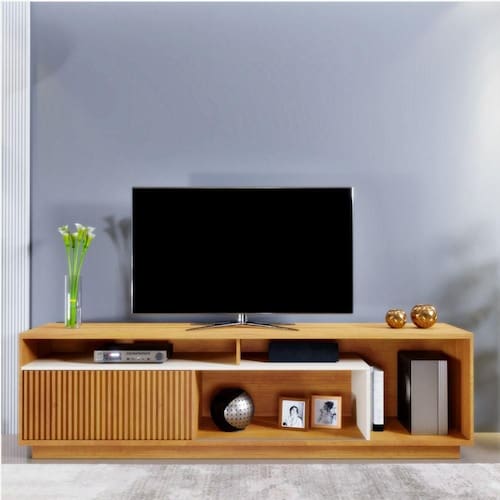 Rack Granada Para Até 75 Polegadas Mavaular lle Com Off White Rack Granada para de ate 75 Polegadas Mavaular e aquele movel que vai dar um charme a mais na sua sala de estar e deixa-la ainda mais aconchegante. Altura (cm): 56,5 cm Largura (cm): 200 cm Profundidade (cm): 36cm Peso (kg): kg