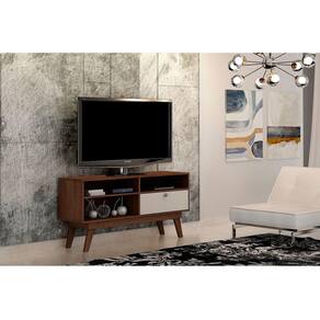 Características: Rack Marca: Valdemoveis Modelo: Houston Material da Estrutura: MDP Tipo de Acabamento: Pintura UV Quantidade de Nichos: 03 Material do Puxador da Porta: EPS Tipo de Dobradiça da Porta: Metálica de Pressão Acomoda TV LCD e LED de até: 50 Polegadas