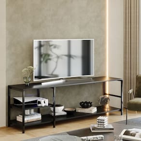 Design Industrial Acomoda TV de 60 Polegadas Prateleiras Versáteis