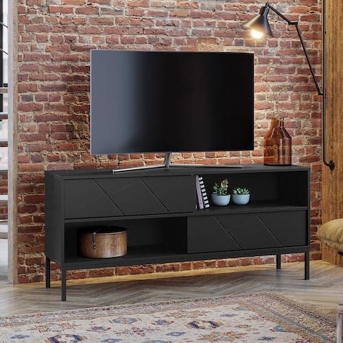 Rack Industrial Para Tv 55 Polegadas Tetris - Preto Acetinado - Cor: Preto