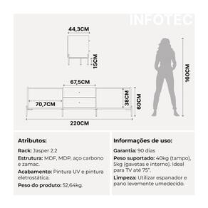 Rack Jasper 220 cm Off White Fosco com Dourado - Rack para TV