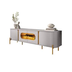 Seu design moderno traz 4 portas em MDF com dobradiças soft close, que garantem fechamento suave e durabilidade. Internamente, conta com 4 nichos bem distribuídos e 1 prateleira, ideais para acomodar eletrônicos, acessórios e objetos decorativos.