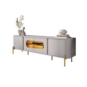 Seu design moderno traz 4 portas em MDF com dobradiças soft close, que garantem fechamento suave e durabilidade. Internamente, conta com 4 nichos bem distribuídos e 1 prateleira, ideais para acomodar eletrônicos, acessórios e objetos decorativos.