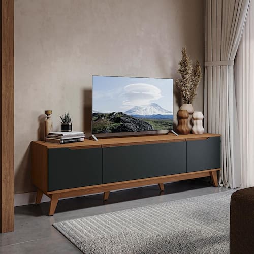 Com duas portas laterais e uma porta basculante central, você terá amplo espaço para guardar seus itens com praticidade, deixando sua sala de estar sempre organizada. A base e os pés completam o design e a qualidade do produto, garantindo seu acabamento clássico e rústico. Nas portas, o destaque fica para o sistema de amortecimento, garantindo um fechamento suave e sem ruídos, além de mais durabilidade, e o puxador cava embutido proporciona o toque de beleza que faltava, deixando sua sala de estar perfeita.