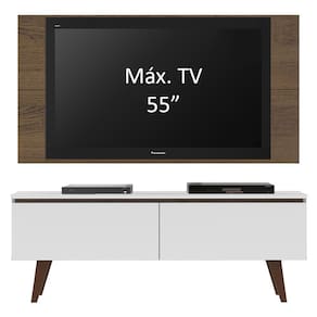 O Painel comporta TVs de até 55 polegadas. É de fácil instalação, possui passa fios e capas decorativas para esconder os parafusos de fixação. O produto segue com as ferragens necessárias para fixar o painel em parede de alvenaria. Não acompanha suporte para fixação da .
