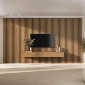 O Rack com painel Aruá traz a essência do estilo japandi, inspirado na simplicidade oriental e no equilíbrio entre forma e função. O rack possui um design baixo com acabamento em Jatobá, ferragens premium, unindo sofisticação e praticidade. Já os painéis são produzidos em chapas de 15mm e oferecem modularidade e personalização do espaço. Versáteis, podem ser utilizados como revestimentos de parede ou painéis de TV, transformando o ambiente com harmonia e elegância. Produto Montado: Sim Acabamento: Finish Foil Acabamento da Porta: Finish Foil Acabamento dos Pés: Finish Foil Altura do Conjunto: 250 cm Altura do Painel: 250 cm Altura do Rack: 31,5 cm Altura dos Pés: 5.5 Altura Máxima dos Pés: 5.5000 Ambiente Principal: Sala de Estar codigo_ean: 7900288310712 Complexidade da Montagem: Média: pode ser montado por mais de uma pessoa e/ou necessite de maior conhecimento para montagem Cor: Jatobá Cor do Produto: Jatobá Escala de Brilho: Semi-Fosco Escala de Brilho da Porta: Semi-Fosco Espessura do Painel: 4,5 cm Espessura do Tampo: 15 mm Fixação na Parede: Sim Itens Inclusos: Painel com Rack, Manual de Montagem e Kit Ferragens Largura do Conjunto: 400 cm Largura do Rack: 210 cm Linha ou Coleção: Aruá Manual de Montagem e Instalação: https://product-hub-prd.madeiramadeira.com.br/554573848/documents/e148b6a1-3025-4088-bc5e-a7c9cf74cba83357271342817684856973139.pdf Marca: CabeCasa MadeiraMadeira Material da Porta: MDP Material dos Pés: MDP Material Principal: MDP Montagem Flex: Não Necessita Montagem: Sim Origem do Produto: Nacional Peso do Painel: 196,25 kg Peso do Rack: 31,35 kg Possui Espelho: Não Possui iluminação: Não Possui Passa Cabos: Não Possui Pés: 02 Possui Prateleiras: Não Possui Tomada: Não Possui Vidro: Não Profundidade do Conjunto: 42 cm Profundidade do Rack: 37,5 cm Recomendações de Uso, Manutenção e Limpeza: A limpeza deve ser feita com pano macio, levemente umedecido com água e sabão neutro. Em seguida, passe um pano seco para evitar o acúmulo de umidade. Nunca utilize produtos abrasivos, esponjas de aço, alvejantes, álcool em excesso ou solventes, pois esses produtos podem agredir o acabamento e comprometer sua aparência. Sapatas Niveladoras: Não Sistema de Montagem: Parafusos e cavilhas Suporte de TV Universal Incluso: Não Tipo de Dobradiça/Corrediça da Porta: Metálica Tipo de Porta: Basculante Tipo de Puxador da Porta: Embutido