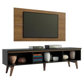 O acabamento do rack é preto com detalhes em amadeirado Rustic e o painel é todo em pintura no padrão amadeirado Rustic. O processo é feito em Pintura Poliéster com 7 camadas de proteção, resistente a álcool, água e calor. Além de ser um processo ecológico, isento de vapores que vão para a atmosfera.