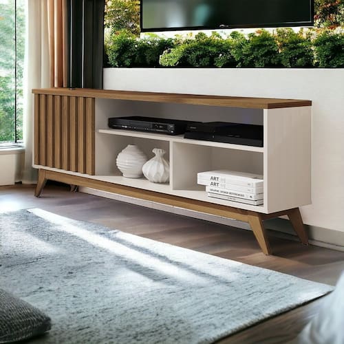 Dimensões do Produto Montado: Altura: 63 cm Largura: 136 cm Profundidade: 36 cm Observações: - Tampo reforçado em MDP - Portas com dobradiças - Pés em madeira Informações adicionais: - Verifique o tamanho e os detalhes do produto antes de realizar a compra. - As fotos são meramente ilustrativas. Objetos decorativos que aparecem nas imagens não acompanham o produto. - A transportadora entregará o produto no portão e/ou portaria da residência, ou ainda, somente no andar térreo, em caso de prédios, do endereço de entrega. - Avaliar a mercadoria no ato do recebimento e recusar em caso de divergência ou danos.
