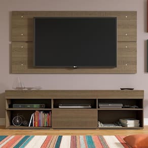 - O painel para TV tem um ótimo tamanho e comporta TVs de até 55 polegadas.