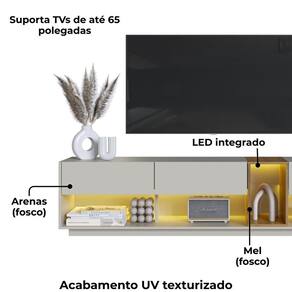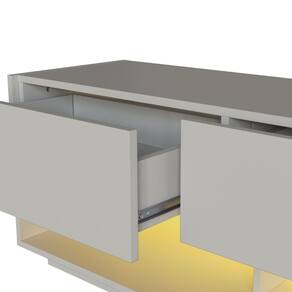 Rack Bancada 8001, funcionalidade e estética moderna em um só móvel. Estrutura em MDP 15mm com acabamento em pintura UV texturizada. Conta com gavetas equipadas com corrediças telescópicas, nichos decorativos funcionais, LEDs RGB com três opções de cores e rodapé integrado. Suporta TVs de até 65 polegadas com segurança. Este produto será entregue em 1 volume.