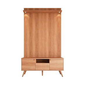 Rack Movelove 2 Portas e 1 Gaveta com Painel Led Efeito Ripado para TV 70 Polegadas River 136cm - Marrom Cacau