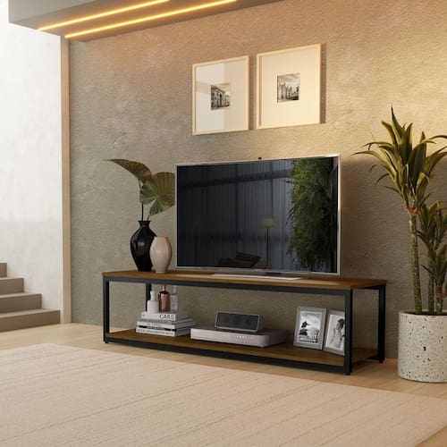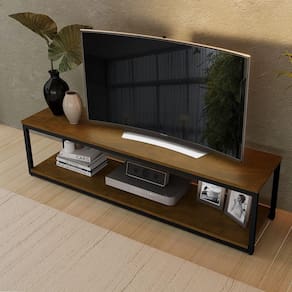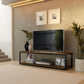 Rack estilo industrial em Aco carbono com pintura eletrostatica e tampo em MDF com acabamento em pintura UV. Bordas em PVC na cor do tampo.