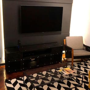 É ideal para apoiar sua TV e equipamentos de audio e video, o espaço para armazenagem nas portas vai ajudar a manter a casa toda em ordem.