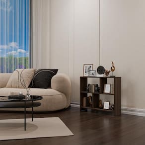 Ficha Técnica: Fabricado em madeira MDP 15mm, na cor Nogal. Medidas Totais: Altura: 60cm x Largura: 70cm x Profundidade: 20cm. Medida interna dos nichos maiores: Altura: 25cm x Largura: 45,3cm. Medida interna dos nichos menores: Altura: 25cm x Largura: 20cm.