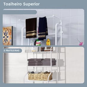 - Toalheiro Superior Integrado: Aproveite o toalheiro na parte superior do rack para secar roupas leves, toalhas ou peças delicadas, maximizando o uso do espaço de forma prática.