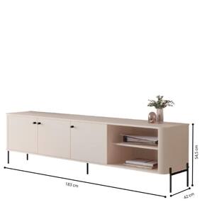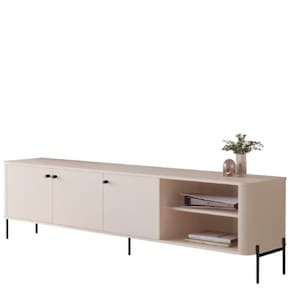 Possui pés e puxadores em metal, a base e topo em MDF 15mm, 3 porta e 1 prateleira.