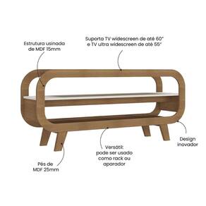 Rack Para Até 60 Polegadas 133,5cm Com Pés Retrô Multimóveis Cr45328 Cinamomo/off White Cinamomo/off White O Rack para até 60 Polegadas 133,5cm com Pés Retrô Multimóveis CR45328 é a solução perfeita para uma sala contemporânea, unindo beleza, uma aparência leve e muito espaço de armazenamento! - Indicado para TVs de até 60 polegadas. - Estilo moderno com curvas: Design arrojado que adiciona um toque contemporâneo à qualquer sala de estar. - Funcional e estiloso: Combinação perfeita entre forma e função para atender às necessidades modernas. - Prateleira para organização: Ideal para exibir objetos decorativos ou dispositivos eletrônicos adicionais. - Espaço inferior amplo: Perfeito para organizar equipamentos, caixas ou acessórios. - Atemporalidade e versatilidade: Adapta-se facilmente a diferentes estilos de decoração. - Qualidade e durabilidade: Fabricado em MDP/MDF com pintura UV, garantindo longevidade.