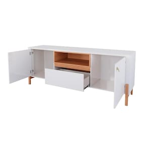 Amplo Espaço de Armazenamento: Com gaveta e portas, oferece organização eficiente para eletrônicos e objetos decorativos.