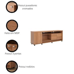 Conta com 3 portas que proporcionam amplo espaço de armazenamento para equipamentos eletrônicos, acessórios e objetos diversos.
