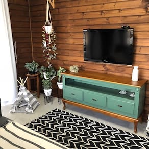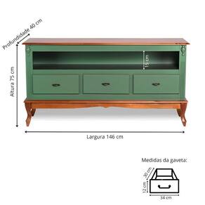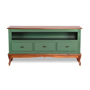 Rack Para Sala 3 Gavetas E Nicho Pés Luis Xv - Verde Kalle Laca Com Tampo E Base Imbuia Glazer
