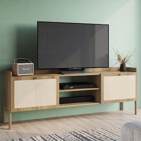 Transforme a sua Sala de Estar em um espaço aconchegante e funcional com o Rack Para Sala Bancada de 65 Pol Pés Madeira Arlo A10 Hanover, da Mpozenato.