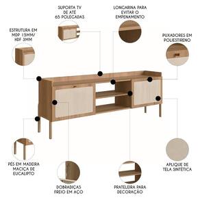 Com design orgânico e inovador, esse Rack para com pés de madeira maciça promete um visual elegante para sua sala. Além de ter capacidade para receber televisores de até 65 polegadas, essa Bancada Para Sala ainda conta com duas portas, com abertura em 90, dobradiças e freio metálicos com proteção anticorrosão e excelente compartimento interno, ideal para armazenar os mais diversos itens e, assim, deixar o tampo livre de bagunças. Mas além da funcionalidade, esse rack também será o ícone decorativo do seu ambiente; afinal, conta com detalhe em tela sintética fixada nas portas que expressa charme e cuidado.