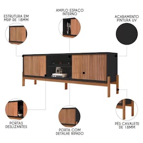 Esse imponente rack moderno, especialmente desenhado para TVs de até 72 polegadas, é a união perfeita entre estética e praticidade. Fabricado com materiais de alta qualidade como MDP e MDF, oferece durabilidade e um acabamento primoroso onde se destacam as portas ripadas em baixo relevo e os pés estilo cavalete que conferem uma distinção única ao produto. Já o interior espaçoso com dobradiças metálicas acomoda diversos itens, ao passo que os nichos comportam os seus dispositivos eletrônicos enquanto mantém a organização dos fios, garantindo assim um ambiente clean e convidativo para aproveitar cada segundo de seus programas favoritos ao lado de quem você ama.