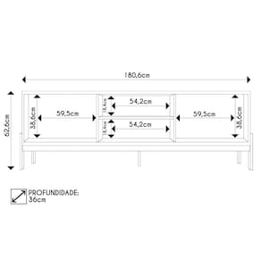 Material da estrutura: MDP 18mm/MDF 15mm/HDF 3mm.