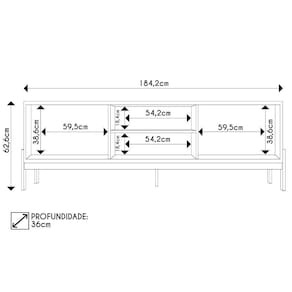 Material da estrutura: MDP 18mm/MDF 15mm/HDF 3mm.