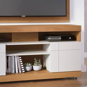 Rack Para Sala Bancada De Tv 47 Pol 136cm Ariele C04 - D'rossi Cor Freijó E Off White Ter uma sala de estar moderna e prática nunca foi tão fácil! Com o Rack Bancada, você ganha um ambiente bem decorado sem abrir mão da organização. Projetados para aproveitar melhor o espaço, esses móveis trazem um toque contemporâneo e elegante para sua casa. Com um design compacto e minimalista, esse móvel é ideal para salas menores, garantindo funcionalidade sem comprometer o estilo. Conta com 2 portas de giro com elegantes detalhes frisados, ideais para guardar diversos objetos, além de uma prateleira ampla para organizar seus aparelhos eletrônicos. Suporta TVs de até 47 polegadas e ainda vem com rodízios embutidos, facilitando a mobilidade. Além disso, os dois compartimentos fechados oferecem mais proteção para guardar objetos que precisam de um cuidado especial. Se encantou? Então não perca tempo! Leve mais sofisticação para a sua sala de estar! Dimensões do Produto Altura: 68,9 cm Largura: 136 cm Profundidade: 37,4 cm Altura dos Pés: 9 cm Peso: 63,7 kg Especificações do Produto: Material da Estrutura: MDP 15mm/25mm Material do Fundo: MDP Suporta TV de até: 47 Polegadas Peso Suportado: 73 Kg distribuídos Acabamento: UV Revestimento: Pintura Escala de Brilho: Fosco Revestimento da Borda: Fitas de borda em papel Possui Nicho: Sim Quantidade de Nichos: 4 Nichos Possui Portas: Sim Quantidade de Portas: 2 Portas Tipo de Portas: Convencionais de Giro Material da Dobradiça: Metálica Possui Gavetas: Não Possui Prateleiras: Sim Quantidade de Prateleiras: 1 Possui Pés: Sim Quantidade de Pés: 5 pés Tipo de Pés: Rodízios Material dos Pés: Plástico Possui LED: Não Possui Passa Fios: Sim Acompanha Suporte para TV: Não Diferenciais: Design moderno; Rodízios 50; portas de giro com detalhes frisados Sistema de Montagem: Parafusos/Cavilhas/Girofix Manual de Montagem: Sim Complexidade da Montagem: Média Montagem: Recomendamos que seja feita por um Garantia: 90 dias contra de fabricação Instruções de Limpeza: Utilizar um pano limpo e levemente úmido Quantidade de Volumes 1 Caixa Medida das Embalagens Caixa : 13,2 cm x 37,7 cm x 139,2 cm : É feita somente até o térreo ou portaria. Não levamos em andares superiores. Confira sempre as medidas das embalagens.
