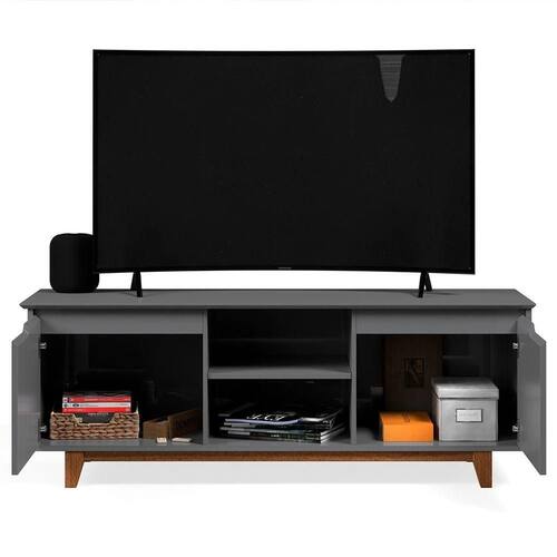 Transforme sua sala em um espaço de entretenimento e estilo com o Rack para Sala Bancada de TV 55 Pol 139cm Flow Cinza, da EJ Móveis!