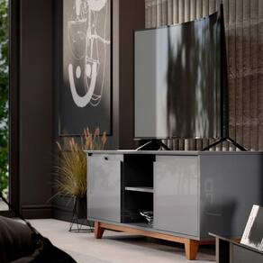 Essa peça une funcionalidade e elegância, tornando-se o item perfeito para a sua sala de estar. Com capacidade para acomodar uma TV de até 55 polegadas sobre a bancada, esse rack oferece espaço de sobra para todos os seus aparelhos eletrônicos, como Blu-ray, videogames, caixas de som e muito mais, os quais podem ser instalados nos nichos centrais. Já a tonalidade sóbria com detalhes em amadeirado dá um toque de sofisticação ao ambiente, combinando facilmente com qualquer estilo de decoração. Seja em uma sala de estar moderna ou em um ambiente mais clássico, o Rack Flow se adapta perfeitamente, tornando-se o ponto focal do cômodo.