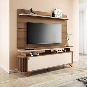 O Rack para Sala Bancada de TV 70 Pol 181,5cm Riley Castanho/Off White você transformará sua sala de estar em um espaço luxuoso. O estilo orgânico, que remete a formas mais naturais e suaves, é também à inovação do design, criando um visual moderno. A linha fluida e elegante do móvel, combinada com os pés de madeira maciça, trazendo uma sensação de sofisticação e aconchego ao mesmo tempo. A capacidade de receber TVs de até 70 polegadas garante que você tenha espaço de sobra para um entretenimento de qualidade. As duas portas são super funcionais, permitindo fácil acesso ao amplo compartimento interno, perfeito para guardar itens diversos como controles, DVDs e outros acessórios. Os ripados nas laterais trazem uma textura sofisticada que adiciona um charme único e modernidade ao design, enquanto o tampo chanfrado cria um visual mais elegante e detalhado. Cada pequeno detalhe foi pensado com cuidado para criar um móvel que não só organiza, mas também enriquece a estética do espaço. Garanta já o seu!