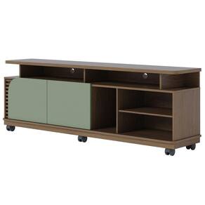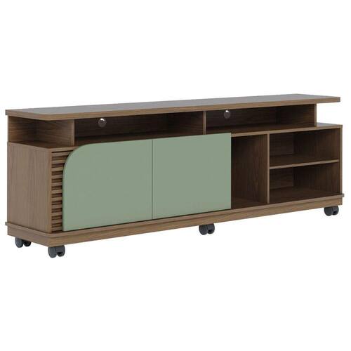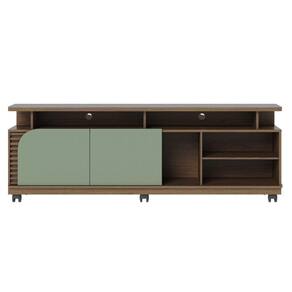 O Rack para Sala Bancada de TV 75 Pol 180cm Madrid C05 Amêndoa/Hortelã, da Mpozenato, é perfeito para a sua sala de estar! Com um design contemporâneo e elegante, esse rack para sala vai transformar o seu ambiente com estilo e funcionalidade. Destacando-se pelos apliques ripados decorativos e pela porta de quina assimétrica usinada, essa bancada é única e cheia de personalidade. O tampo de 25mm garante maior resistência, principalmente contra empenos, suportando até 35 kg sobre ele e TVs de até 75 polegadas. Além disso, essa bancada para tv possui nichos espaçosos, tanto para aparelhos eletrônicos, quanto para objetos decorativos. Para adicionar ainda mais funcionalidade, conta também com duas portas de giro, oferecendo praticidade para organizar os mais diversos objetos. Para completar, com os 6 rodízios inclusos, você tem a versatilidade de movimentar o rack pela sala quando quiser, facilitando bastante a hora da limpeza. Então, não perca tempo, leve já a Bancada Madrid para sua casa e tenha um ambiente moderno e funcional! Dimensões do ProdutoLargura: 180 cm. Altura: 62 cm. Profundidade: 39,3 cm. Peso: 42 kg. Características do ProdutoMaterial da estrutura: MDP 25mm, 15mm, 12mm/MDF 15mm/HDF 3mm. Acabamento: Pintura UV. Escala de Brilho: Fosco. Peso Suportado: 61 kg distribuídos. Ideal para TV de até: 75 polegadas. Quantidade de Portas: 2 Portas. Tipo de Porta: Convencional, de giro. Tipo de Dobradiças: Metálicas. Possui Puxadores: Não. Possui Gavetas: Não. Quantidade de Prateleiras: 1 Prateleira. Quantidade de Nichos: 5 Nichos. Possui Pés: Sim. Tipo dos Pés: Rodízios Plásticos. Possui Passa Fios: Sim. Diferenciais: - Design moderno. - Detalhe ripado na lateral. - Rodízios com 9cm de altura, para melhor mobilidade. - 01 Porta, tampo e base com cantos curvos. - Tampo com 25mm de espessura para maior resistência. Sistema de Montagem: Parafusos/Cavilhas/Minifix. Manual de Montagem: Sim. Complexidade da Montagem: Média. Volumes: 2 Volumes. Conteúdo da Embalagem: 1 Rack. Garantia do Fabricante: 90 dias contra defeito de fabricação. Montagem: Recomendamos que seja feita por um profissional. Recomendação de Limpeza: Utilize pano levemente úmido. Observações importantes- Produto para uso residencial em ambiente interno, não devendo ficar exposto diretamente ao sol, calor e umidades excessivas. - Pode haver alguma diferença de tonalidade entre a imagem e o produto real, por conta do tratamento de imagens e a calibração de cores do seu monitor. - As imagens são meramente ilustrativas, não acompanham objetos de decoração e eletrônicos. - Confira o estado da embalagem, não devendo assinar o comprovante em caso de danos. - Não asseguramos, no ato da entrega, por subir escadas/elevadores, pelo transporte por guincho em apartamentos ou montagem, desmontagem e instalações. Eventuais despesas são por conta do comprador. - Confira as dimensões do produto e certifique-se de que passará normalmente por supostos elevadores, portas, escadas e/ou corredores de sua residência.