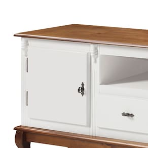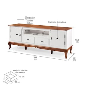 Rack para Sala com Pés Luis XV 2 Gavetas 2 Portas de Madeira e Nicho 60503M Linz Móveis - Branco/Imbuia Glazer