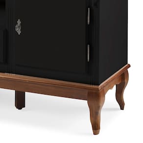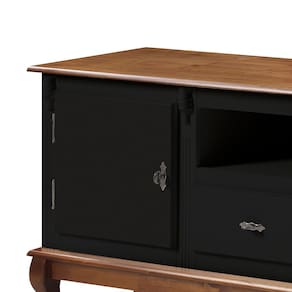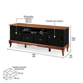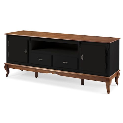 Rack para Sala com Pés Luis XV 2 Gavetas 2 Portas de Madeira e Nicho 60503M Linz Móveis - Preto/Imbuia Glazer - Preto