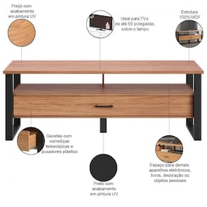 Composto 100% em MDF, este rack bancada apresenta um tampo robusto de 24mm de espessura e pés de 25mm, garantindo durabilidade e estabilidade para acomodar sua de até 55 polegadas. O design clean e contemporâneo não apenas eleva sua sala de estar, mas também a torna mais convidativa e aconchegante. Para completar, o nicho central é ideal para organizar equipamentos eletrônicos, enquanto a gaveta proporciona um espaço extra para itens que você deseja manter à mão, mas fora da vista.