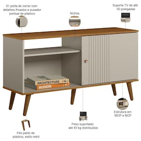 Funcional, prático e com um design pensado para o dia a dia, esse rack compacto é um exagero de funcionalidade, a começar que serve de suporte para TV de até 50 Polegadas, ao passo que porta de correr garante organização com facilidade de acesso. Ah já o design frisado dá um charme especial! Para completar, os nichos oferecem praticidade sob medida, ao serem perfeitos para dispor aparelhos eletrônicos ou objetos de decoração, enquanto os pés palito proporcionam estabilidade e leveza ao visual.
