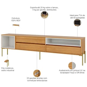 Eleve o estilo da sua sala de estar com o Rack Sorah, da Lyam Decor! Combinando um design industrial moderno com pés metálicos resistentes, este rack é a escolha perfeita para quem busca sofisticação e funcionalidade em um só móvel.