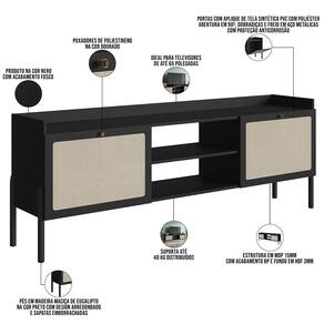 Conquiste a sala de estar dos sonhos com o Rack para Sala Moss, da Lyam Decor. Com design moderno e elegante, esse rack para TV não é apenas uma peça decorativa, mas também uma solução prática para organizar seu espaço e expor aparelhos de TV até 65 polegadas. Além disso, os pés em madeira maciça garantem durabilidade e um toque rústico, enquanto o detalhe em tela sintética traz um charme artesanal que irá encantar a todos. Para completar, é o produto Ideal para acomodar seus eletrônicos e exibir suas decorações; afinal, esse rack 2 portas combina versatilidade e beleza, elevando a estética de qualquer ambiente. Aproveite cada momento em frente à TV com conforto e estilo! Dê vida nova à sua sala e garanta já o seu!