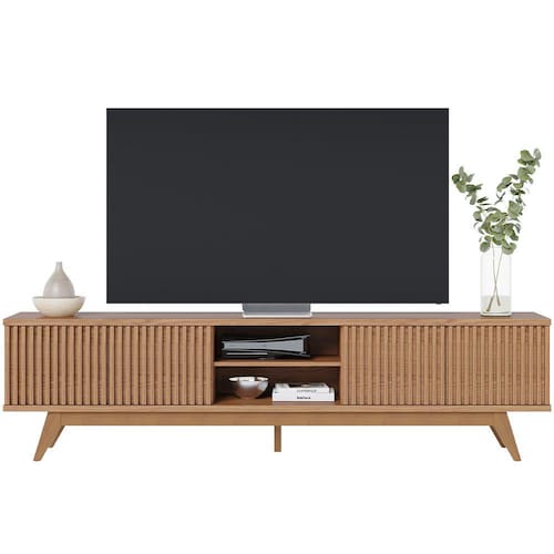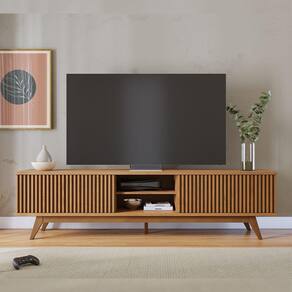 O Rack para Sala De Estar TV 75 Pol 218cm Aracaju C04 Freijó, da Lyam Decor, é perfeito para quem busca um móvel moderno e funcional. Com seu design contemporâneo, ele pode acomodar uma TV de até 75 polegadas. Já o destaque fica por conta das 4 portas com ripados artesanais que trazem delicadeza e refinamento ao ambiente, assim como seus pés de madeira maciça estilo retrô que agrega charme. Para garantir ainda mais funcionalidade, o nicho central é perfeito para armazenar dispositivos eletrônicos de forma prática e organizada sem deixar fios aparentes.