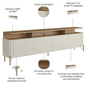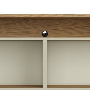 Com pés metálicos no estilo industrial e cantos arredondados que suavizam o ambiente, esse rack industrial móvel é a fusão perfeita entre força e sofisticação. O tampo flutuante cria a sensação de que sua TV 75 polegadas está suspensa, enquanto os nichos estratégicos organizam todos os aparelhos com ventilação ideal. Os espaços internos amplos, discretamente escondidos atrás das portas brise, são convites para organizar desde coleções até aqueles itens do dia a dia que você quer manter por perto, mas longe da vista.