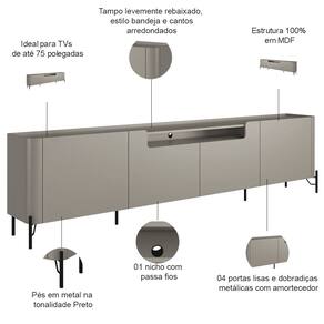 Com seus pés metálicos robustos e cantos suavemente arredondados, esse rack para TV traz personalidade à sua sala de estar, enquanto oferece uma organização inteligente para todos os seus equipamentos. Detalhe como o tampo levemente rebaixado no estilo bandeja garante segurança para sua TV, além de criar um visual clean e sofisticado. Por baixo, um amplo espaço interno com 4 portas mantém o ambiente livre de bagunça, enquanto o nicho exclusivo para aparelhos eletrônicos assegura ventilação adequada e fácil acesso. Enfim, seja em salas modernas ou ambientes rústicos, esse rack industrial orgânico impõe presença sem pesar visualmente, graças às suas linhas harmoniosas e acabamento impecável em MDF.