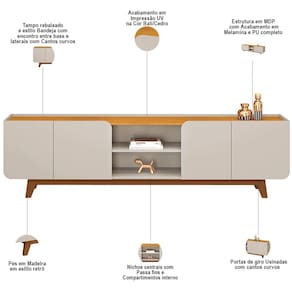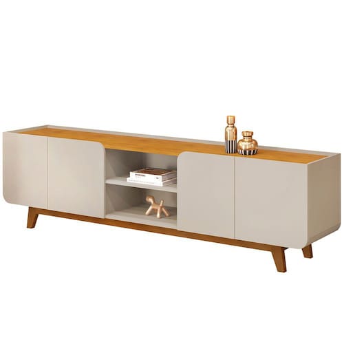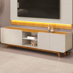 O Rack Para Sala de Estar TV 75 Pol Cine D05 BaliCedro, da Lyam Decor, combina funcionalidade e estilo em um só lugar. Com um tampo rebaixado que cria o efeito de bandeja e cantos curvos modernos, esse rack bancada traz o melhor do design contemporâneo para sua sala. Por sua vez, a funcionalidade fica por conta das quatro portas, já que garantem um amplo espaço interno para armazenar seus objetos. Além disso, os dois nichos e a prateleira entre as portas foram projetados intencionalmente para dispor os demais aparelhos eletrônicos ou até mesmo itens decorativos. Para completar, você ainda pode dispor de TVs de até 75 polegadas sobre o tampo e, assim, deixar o ambiente ainda mais imponente. Aproveite momentos de entretenimento com muito estilo com o Rack Cine. Garanta já o seu!