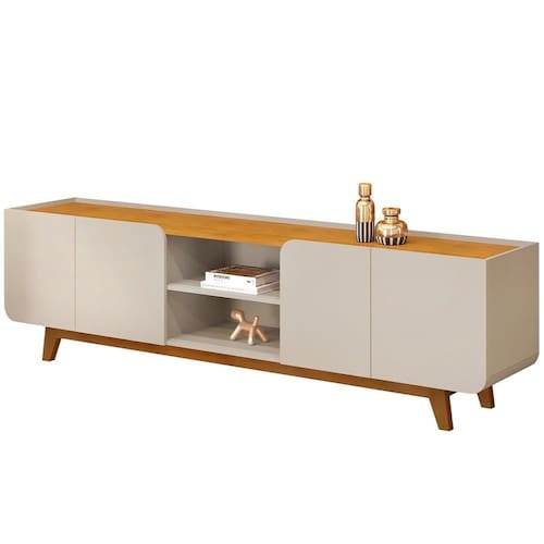 O Rack Para Sala de Estar 75 Pol Cine D05 BaliCedro, da Lyam Decor, combina funcionalidade e estilo em um só lugar. Com um tampo rebaixado que cria o efeito de bandeja e cantos curvos modernos, esse rack bancada traz o melhor do design contemporâneo para sua sala. Por sua vez, a funcionalidade fica por conta das quatro portas, já que garantem um amplo espaço interno para armazenar seus objetos. Além disso, os dois nichos e a prateleira entre as portas foram projetados intencionalmente para dispor os demais aparelhos eletrônicos ou até mesmo itens decorativos. Para completar, você ainda pode dispor de TVs de até 75 polegadas sobre o tampo e, assim, deixar o ambiente ainda mais imponente. Aproveite momentos de entretenimento com muito estilo com o Rack Cine. Garanta já o seu!